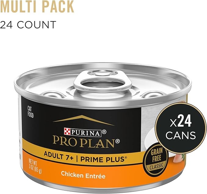 Purina Pro Plan Grain Free Senior Wet Cat Food Pate, SENIOR Adult 7+ Prime Plus Chicken Entree - (Pack of 24) 3 oz. Pull-Top Cans